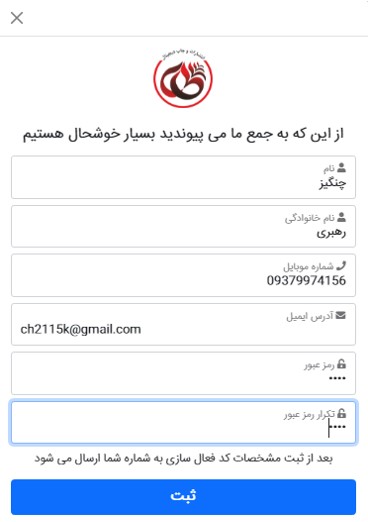 مشخصات خواسته شده را با دقت وارد کنید .