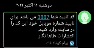 پس از وارد کردن مشخصات یک کد به شماره موبایل شما ارسال می شود ممکن است تا 15 دقیقه طول بکشد ولی نگران نباشید تا 30 دقیقه این کد برای شماره شما معتبر است .
